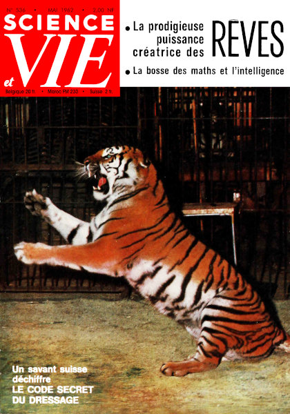 mai 1962 – 180 pages• Nos lecteurs nous écrivent Actualités • Le monde en marche Magazine • La bosse des maths prouve-t-elle l’intelligence ? • Clefs et secrets des dompteurs • Tank contre taudis • Voile : l’aventure marine est à votre portée • Le routier le plus long • L’homme est-il périmé ? • Cinq pays, un avion : le Bréguet Atlantic • De la compétition à la série, le frein à disque • Sur Jupiter, un étrange émetteur-pirate • Beynes : 300 millions de m3 de gaz sous le sable • La Rover à turbine • Fusées : la bataille des carburants • La prodigieuse puissance des rêves • L’université du muscle La technique à votre service • Toutes les colles et leurs emplois • L’art d’utiliser une caméra • Arts ménagers : tendances 1962 • Les livres