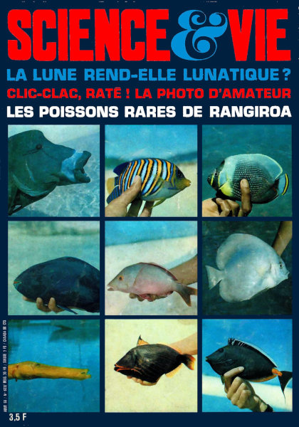 août 1969 – 156 pages• Courrier des lecteurs SAVOIR • On avait déjà marché sur la Lune • La Lune rend-elle « lunatique » ? • Un enfant sur trois est aujourd’hui « gaucher » • La biochimie de l’angoisse • Pourquoi 8 millions de Français font-ils tous les mêmes photos ? • La mort d’un lac • Les dernières eaux vierges de Polynésie • Le mystère des kipus • Chroniques des laboratoires POUVOIR • Avec l’ordinateur, 25 % de ventes en plus, 25 % de stocks en moins • La « neutrographie » permet de voir à travers les murs • Chroniques de l’industrie UTILISER • À la portée des amateurs : la photographie aérienne par cerf-volant • Jeux et paradoxes : Les alphagrammes • Le nouveau projet d’orientation scolaire • Sachez pourquoi les lions détestent le café • Chroniques de la vie pratique