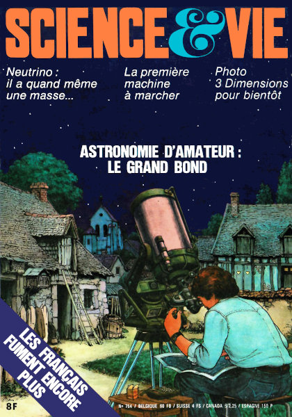 juillet 1980 – 164 pagesSAVOIR • Le neutrino a quand même une masse ! • La calmoduline, une protéine qui commande le muscle • Mesurer l’intelligence par EEG ? • Les « La Villette » américains • Les dons de la mer • Les animaux nains de la préhistoire • La Terre enfle… • Seasat, le satellite pour voir terre et mer • Ascenseur pour le cosmos • Chroniques de la recherche POUVOIR • La machine à marcher • Cultiver sans terre et moins cher • Comment marchent les touches sensibles • Pour bien innover, pas trop d’ambition ! • Les Français fument encore plus • Chroniques de l’industrie UTILISER • Le grand bond de l’astronomie • Jeux et paradoxes : Tératomagie • Les échecs • Jeux de réflexion : « Plus 3 » au banc d’essai • Go : Partie à 5 pierres • La calculette de l’astronome : Les fusées-sondes et leurs performances • Physique amusante : Le mercure vivant • Électronique amusante : Un voltmètre à LED • Comment jouer les Robinson en terre ferme • Photos en 3 dimensions pour tout le monde • Hi-Fi : le plaisir et l’oreille • Les livres du mois • Chroniques de la vie pratique |