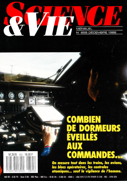 décembre 1988 – 180 pagesSAVOIR • Forum • Le suaire de Turin ne se rend pas • Quand un savant se fait la dent sur les âneries • Le nouveau sugnal des sourciers • À la recherche de la 5e force • Arithmétique et secrets d’État • Marquise, votre grand-mère était une négresse • Combien de dormeurs éveillés aux commandes ? • Quand la CIA lavait les cerveaux • L’ours • Le SOS de la baleine blanche • Échos de la recherche POUVOIR • Le téléphone des ordinateurs • La truffe à la carte • L’espace quatre étoiles • Haute couture spatiale • Le croiseur invisible • Le bateau qui roule comme une auto • Échos de l’industrie UTILISER • Correction de la vue : des lentilles pour tous • Le retour du 24×36 reflex mécanique • Des jouets pour éveiller l’esprit • Physique amusante : Moteur thermique à élastiques • Le journal de l’astronome : Le mois des dieux • Jeux mathématiques : Un tournoi pour vos préparer • Électronique amusante : Visualisons les effets stéréo • Informatique amusante : Jouons au Mastermind • Les livres du mois • Échos de la vie pratique • Les objets du mois |