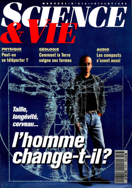juillet 1993 – 160 pages• Éditorial : Socrate pas mort • Courrier • Échos de la recherche • La photo du mois • Échos de l’environnement • Échos de l’industrie • PHYSIQUE : Peut-on se téléporter ? • HISTOIRE : D’Euclide aux géométries de l’impossible DOSSIER : Anthropologie : L’homme change-t-il ? • Nous sommes de plus en plus grands • Nous sommes de plus en plus vieux • Nous ne sommes pas de plus en plus intelligents • … Mais nos gènes continuent d’évoluer