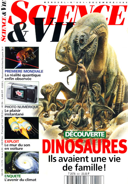 décembre 1996 – 196 pages• L’évènement : Airbus : les vraies raisons d’un succès • Forum ACTUALITÉ • Recherche • Environnement • Technologie • Médecine • BALISE : Le loto en chiffres • FOCUS : Le TGV dans le flou • ASTROPHYSIQUE : Les derniers secrets de l’Univers • PHYSIQUE : – Première mondiale : l’étrangeté quantique est bien réelle – Antigravité : autopsie d’un scoop – Le miroir qui disparaît • SANTÉ : Tabac : la faute de p53 • CAHIER PHOTOS : Rêves de pierre • EN COUVERTURE : Dinosaures : ila avaient une vie de famille ! – Une famille très comme il faut – La longue saga des « terribles lézards » – Le mystère des aires de ponte • ENQUÊTE : Climat : des lendemains qui chauffent • HISTOIRES : Nobel : un prix explosif • Rétro : Il y a 70 ans • AUTOMOBILE : – Ces engins qui veulent fracasser le mur du son – Les effets pervers de la voiture électrique • PHOTO NUMÉRIQUE : Le plaisir instantané SÉLECTION • High-tech • Astronomie • Livres • CD-Rom • Internet FUTURS • La musique qui surgit de l’avenir • Les antibiotiques survivront-ils à l’an 2000 ? • C’est déjà demain ! |