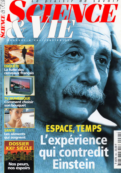janvier 1998 – 160 pages• L’évènement : Bonne année aux océans ! • Forum ACTUALITÉ • Recherche • Environnement • Technologie • Médecine • FOCUS : Faut-il autoriser le cannabis ? • ASTRONOMIE : Mars : et la fête continue • IDÉES REÇUES : Pour en finir avec l’astrologie • EN COUVERTURE : Espace, temps : L’expérience qui contredit Einstein • EMBRYOLOGIE : Pourquoi avons-nous cinq doigts ? • PHARMACOLOGIE : Les protéines de l’auto-défense • DOSSIER : XXIe siècle : nos peurs, nos espoirs – L’avenir n’est écrit nulle part – L’an 2000 vu par Science & vie – L’homme, une espèce menacée ? • CAHIER PHOTOS : Le logiciel qui fait pousser les arbres • SANTÉ : Les Français malades de leurs médicaments • ENQUÊTE : La fuite des cerveaux français • HISTOIRES : Radioactivité : Les amoureux du radium • Rétro : Il y a 70 ans • AÉRONAUTIQUE : Alerte aux rayons cosmiques • TÉLÉVISION : Comment composer son « bouquet » • SPORT : Les skis du bonheur • ALIMENTATION : Mange et sois belle SÉLECTION • High-tech • Livres • CD-Rom • Astronomie • Internet FUTURS • Essence : l’avenir est à l’oxygène • C’est déjà demain ! |