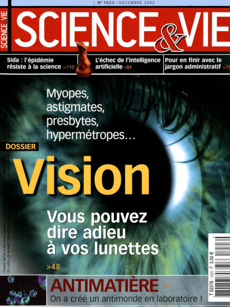 décembre 2002 – 184 pages• Avant-propos : Les ophtalmologistes voient rouge ACTUALITÉS • RECHERCHE : • La découverte d’un Homo georgicus bouleverse l’évolution • Une protéine relance la thérapie génique • Ils ont fini le tableau d’Escher • SANTÉ & MÉDECINE : • La neurostimulation pour guérir les TOC • Hépatite C : un simple test remplace la biopsie du foie • CADRE DE VIE & ENVIRONNEMENT : • L’histoire du climat inscrite dans les neiges du Kilimandjaro • Le fisc bride l’essor des biocarburants DÉCODAGE • [À LA UNE] : La vision • EN PROGRÈS • Ils fabriquent des antiatomes en série • L’État va enfin parler français ! • EN PRATIQUE • L’intelligence artificielle en échec • Zeugma : le scandale a bien eu lieu ! • Faire travailler son PC pour la science • CASSE-TÊTE • Créer la vie à partir de « rien » ? • Feux de charbon : la Chine brûle-t-elle ? REPÈRES • Le point sur… Le sida – Contexte : Jusqu’à quand ? – Faits & chiffres : Plus de 13 000 cas par jour dans le monde – Mécanisme : Un virus sournois qui ne cesse de se modifier – Prévention : Mobiliser au maximum les populations – Traitements : Les multithérapies n’ont pas tout réglé – Recherche : La quête d’un vaccin relance l’immunologie • QUESTIONS-RÉPONSES • Pourquoi les planètes tournent-elles autour du Soleil ? • Est-il vrai que les ordinateurs font des erreurs de calcul ? • Pourquoi la mer est-elle salée ? • Le ciel du mois • HISTOIRE : Abel : héros romantique, il inventa la modernité mathématique • COMMENT ÇA MARCHE : Le laser • ILS L’ONT FAIT : La high-tech dans tous ses états • IL Y A… 50 ans EXPLORATION • L’odyssée de l’espèce • Toutankhamon |