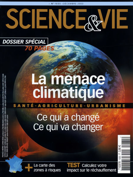 décembre 2003 – 196 pages• Avant-propos : Le climat, cet inconnu ACTUALITÉS • RECHERCHE : • Dans un kilo, il y a moins d’atomes que prévu • L’Univers est peut-être une vaste illusion géométrique • La sélection naturelle n’aurait pas qu’un seul papa… • SANTÉ & MÉDECINE : • À hautes doses, le sport donne de l’asthme • Des « préservatifs vivants » pourraient protéger les femmes du sida… • ENVIRONNEMENT & CADRE DE VIE • Le courant marin fournit ses premiers watts en Norvège • En Thaïlande, le corail renaît dans des tuyaux… DOSSIER SPÉCIAL • SPÉCIAL CLIMAT… • La menace climatique • EN PROGRÈS • Ce qui a changé, ce qui va changer • Toutes les cartes du climat en 2100 • On peut enfin prévoir sur un siècle ! • La montée des phénomènes extrêmes • EN PRATIQUE • L’Homme menacé par le réchauffement • Santé : Une mobilisation sur tous les fronts • Agriculture : Les défis d’une nouvelle donne • Urbanisme : La course contre la montre • Calculez votre impact sur le climat • CASSE-TÊTE • La science face aux défis du réchauffement • Repousser les limites de la prévision • Jusqu’où tiendra le vivant ? • Sans l’homme, le climat varie quand même ! DÉCODAGE • EN PROGRÈS • Régénérer nos organes, c’est possible ! • EN PRATIQUE : Big Brother • CASSE-TÊTE : Conjecture de Kepler REPÈRES • Le point sur… Le chocolat – Contexte : La fin de la pureté – Faits & chiffres : En 40 ans, la production de cacao a doublé – Fabrication : Ces levures qui font le bon goût au cacao – Historique : Une passion vieille de quarante siècles – Santé : Une drogue douce pleine de bienfaits – Création : Le support de bien des folies • QUESTIONS-RÉPONSES • D’où vient l’athérosclérose ? • Pourquoi la Lune est-elle grosse le matin ? • De quelle façon le sel conserve-t-il les aliments ? • Comment l’anguille nous électrocute-t-elle ? • Le ciel du mois • HISTOIRE : Les frères Wright • COMMENT ÇA MARCHE : Le microscope à effet tunnel • ILS L’ONT FAIT : Le reflex au capteur autonettoyant – Le techno-pendentif… • IL Y A… 65 ans EXPLORATION • Sur les traces du pharaon-fantôme |