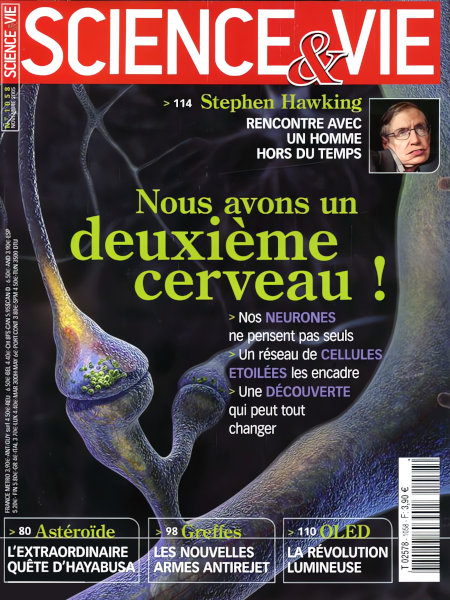 novembre 2005 – 168 pages• Avant-propos : Les deux temps de la science • FORUM : Réactions, critiques, remarques… nos lecteurs prennent la plume • ON EN REPARLE : Nous en avions parlé, ils font de nouveau l’actualité • ILS L’ONT FAIT : Retour en image sur les derniers événements scientifiques ACTUALITÉS • EN DIRECT DES LABOS : Une enzyme répare l’ADN en un clin d’œil – Un gorille a été vu maniant un outil – etc. • La nacre a révélé le secret de sa solidité • PLANÈTE TERRE : Le volcanisme aurait tué les dinosaures – La Chine est plus polluée qu’elle ne le dit – etc. • SANTÉ : Traiter l’hypertension profite au cerveau – Fumer provoque la cécité – etc. • L’AGENDA DES SCIENCES : Tous les grands rendez-vous scientifiques de novembre • LES CLÉS POUR COMPRENDRE : En septembre, le cyclone Katrina ravageait la Louisiane, semant la dévastation À LA UNE : Nous avons un deuxième cerveau ! FONDAMENTAL • SYSTÈME SOLAIRE : Une sonde japonaise tente d’en percer les origines • PERMAFROST : La fonte de ces sols gelés menace-t-elle la planète ? • SAUTERELLES : Un ver les parasite jusqu’à les pousser… au suicide • GREFFES : De nouveaux médicaments « antirejet » arrivent enfin • PAPYRUS D’HERCULANUM : Les derniers procédés d’imagerie permettent de les lire ! • ÉLECTROLUMINESCENCE : Les diodes Oled s’apprêtent à révolutionner l’éclairage EXPLORATIONS • RENCONTRE : Stephen Hawking, le conteur du temps • RÉCIT : Sciences arabes, un si bel héritage… EN PRATIQUE • 13, À LIRE, À VOIR : Tout sur les livres, expositions, films, sites web, etc., de l’actualité des sciences. – Et toujours « le Ciel du mois » • Q & R : À quoi sert-il de cloner les animaux ? – Qu’y aura-t-il après le DVD ? – Pourquoi un jour a-t-il 24 heures ? – Qu’appelle-t-on un point de côté ? • LE POINT SUR… le TGV • TECHNOFOLIES : La micro optique pour cordes – La télé qui fait miroir – etc. • TEST : Êtes-vous cyber-dépendant ? |