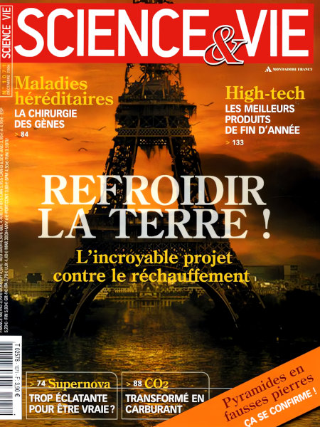 décembre 2006 – 160 pages• Avant-propos : Pire que le mal ? • FORUM : Réactions, critiques, remarques… nos lecteurs prennent la plume • ILS L’ONT FAIT : Retour en image sur les derniers événements scientifiques ACTUALITÉS • EN DIRECT DES LABOS : La glace lunaire fond comme neige au soleil – Le bousier a deux atouts charme – Ne pas frissonner est un atout chez le phoque – etc. • PLANÈTE TERRE : La nage des poissons stimule les courant marins – Les taux de méthane dû à l’homme sont bien en hausse – etc. • SANTÉ : Une base de données lie maux et molécules – Le coca nuit aux femmes – etc. • L’AGENDA DES SCIENCES : Les grands rendez-vous scientifiques de décembre • LES CLÉS POUR COMPRENDRE : Téléthon À LA UNE : Refroidir la Terre ! FONDAMENTAL • SUPERNOVA : SN 2003 fg brille deux fois plus que ses sœurs. Or, les supernovae servent d’étalon de mesure de l’Univers… • SUPERSOLIDITÉ : Des expériences montrent que cet état étrange de la matière, prévu par la théorie quantique, pourrait ne pas être un mythe • THÉRAPIE GÉNIQUE : Elle apporte enfin un espoir : celui de traiter une maladie génétique incurable, la myopathie de Duchenne • CARBURANT : C’est un pari insensé que viennent de relever des chimistes : extraire le gaz carbonique de l’atmosphère pour en faire… de l’essence ! EXPLORATIONS • ENQUÊTE : Pyramides en fausses pierres, la science persiste et signe ! • RENCONTRE : Thierry Legault, paparazzi de stars EN PRATIQUE • À LIRE, À VOIR : Tout sur les livres, expositions, films, sites web, etc., de l’actualité des sciences. Et toujours « le Ciel du mois » • Q & R : La pilule augmente-t-elle le risque de cancer du sein ? – Pourquoi certains sont-ils plus sensibles au mal des transports ? – L’homme pourrait-il se reproduire avec le chimpanzé ? • LE POINT SUR… le lave-linge • TECHNOFOLIES : pour les fêtes de fin d’années, la rédaction a sélectionné les produits les plus performants. • TEST : Quel utilisateur de mobile êtes-vous ? |