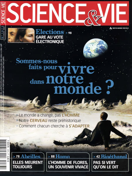 février 2007 – 148 pages• Avant-propos : Sauvagement modernes • FORUM : Réactions, critiques, remarques… nos lecteurs prennent la plume • ILS L’ONT FAIT : Retour en image sur les derniers événements scientifiques ACTUALITÉS • EN DIRECT DES LABOS : L’argent n’a d’odeur que si on le touche – Les souris « froides » vivent plus longtemps – etc. • PLANÈTE TERRE : Un quart de la population mondiale n’a pas l’électricité – Il y a 8 000 ans, un tsunami secouait la Méditerranée – etc. • SANTÉ : Le portable n’est pas cancérogène – il existe un gène de la douleur – etc. • L’AGENDA DES SCIENCES : Les grands rendez-vous scientifiques de février • LES CLÉS POUR COMPRENDRE : Superéthanol : aussi « vert » qu’on le dit ? À LA UNE : Vivre dans notre monde ? FONDAMENTAL • GULF STREAM : Le ralentissement de ce courant n’est finalement pas pour demain • VOIE LACTÉE : Le scénario de sa naissance est à revoir entièrement • CICATRISATION : En intensifiant un courant électrique à la surface de la peau, une plaie cicatrise à vitesse grand V • ABEILLES : Malgré l’interdiction de certains pesticides, l’hécatombe continue • ARMEMENT : La France entre dans le cercle VIP des pays disposant d’une protection antimissile EXPLORATIONS • REPORTAGE : Quand les scientifiques se content Flores • ENQUÊTE : le vote électronique EN PRATIQUE • À LIRE, À VOIR : Tous les livres, expositions, films, sites web, etc., de l’actualité des sciences. Et toujours « le Ciel du mois » • Q & R : Comment choisit-on les médicaments à dérembourser ? – Pourquoi le sourire de la Joconde est-il énigmatique ? • LE POINT SUR… l’ampoule à économie d’énergie • TECHNOFOLIES : La voiture téléguidée à l’hydrogène – La douche à air… • TEST – Jusqu’où êtes-vous sujet à l’illusion ? • Index des numéros 1060 à 1071 pour l’année 2006 |