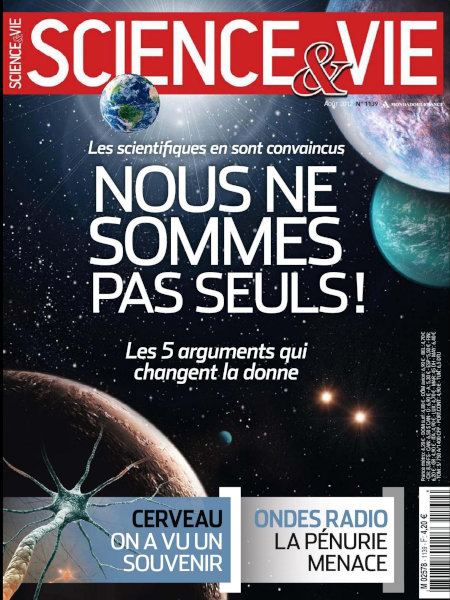 août 2012 – 200 pages• Avant-propos : Plus vraiment seuls • FORUM ACTUS • Labos : Le passé vorace de notre trou noir sort de l’ombre – Universelle est notre horloge biologique – Les dinosaures ont bien été tués dans l’œuf – etc. • ON EN REPARLE : Mort : nos cellules souches survivent à notre décès ! • FOCUS : Boson de Higgs : ça y est ! • Terre : L’été affectera les centrales – La sauterelle qui meurt stressée produira moins d’humus – etc. • IDÉE NEUVE : « Je récolte des sangsues pour surveiller la faune sauvage » • Médecine : Un remède innove contre le glaucome – etc. • FOCUS : Diagnostic prénatal : il y a mieux que l’amniocentèse • LES CLÉS POUR COMPRENDRE : Pourquoi le nombre de cancers va exploser d’ici à 2050 • Technos : S’inspirant du bombyx, un capteur flaire les bombes – etc. • ON TENAIT À VOUS LE DIRE : L’imagerie cérébrale n’est pas faite pour les tribunaux FONDAMENTAL • À LA UNE : Vie extraterrestre : nous ne sommes pas seuls ! • ÉVÈNEMENT : Polémique chez les géologues : Mais dans quelle époque vivons-nous ? • EXPLOIT : On a pu remonter la piste d’un souvenir • ENQUÊTE : Fréquences radio : le spectre ne répond plus • CASSE-TÊTE : Peur sur la Terre : alerte aux satellites fous ! • AVANT-PREMIÈRE : Moustiques : l’homme qui s’empoisonne pour les tuer ! • LE POINT SUR… 70 ans après le projet « Manhattan »… Fabriquer en secret l’arme atomique ? EN PRATIQUE • BON À SAVOIR • ZOOM DU MOIS : Rhume, grippe, gastro… Défenses immunitaires : c’est maintenant qu’il faut les doper ! • QUESTIONS / RÉPONSES : Avec le changement climatique, faut-il s’attendre à des problèmes de santé ? – Qu’est-ce qui fait monter la sève dans les plantes ? – Peut-on guérir du vertige ? – Pourquoi est-il si difficile d’écraser un moustique ? – Un dépistage obligatoire du VIH pourrait-il être envisagé ? – Peut-on mesurer la douleur de façon objective ? • TECHNOFOLIES : L’imprimante qui sculpte des objets en 3D – La brosse à dents ultrasonique – Un Segway-skateboard à chenilles pour crapahuter ! – etc. • LE CIEL DU MOIS • Contre-sommaire DRÔLE DE SCIENCE : 35 DÉCOUVERTES… QUI N’AURONT JAMAIS LE NOBEL |