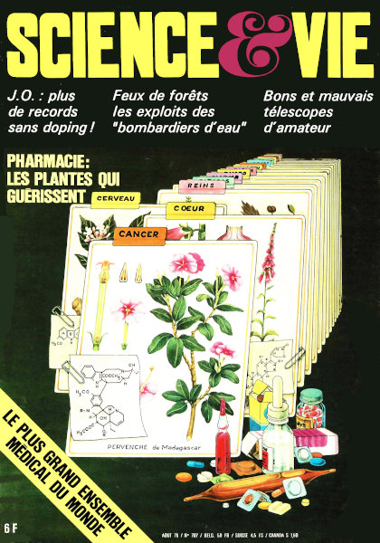 août 1976 – 148 pagesSAVOIR • L’Homme est né en Asie • Dopage, records et Jeux Olympiques • Énergie : La promesse de l’algue à hydrogène • Les coquillages d’Océanie • La fièvre est aussi un mécanisme anti-infectieux • Comment l’épave de Griff Skerry livra son secret • Notre grande enquête « deux siècles de science U.S.A. » (II) : Université Rockefeller, clinique Mayo, laboratoires Syntex • Chroniques de la recherche POUVOIR • L’art de piloter un « bombardier d’eau » • Éoliennes : on peut stocker l’énergie du vent • Chroniques de l’industrie UTILISER • Comment additionnent les calculatrices miniatures • Les 100 plantes médicinales les plus précieuses • Comment s’équiper pour un safari-photo de papillons • Astronomie de vacances : à chacun son télescope • Jeux et paradoxes : Le retour du cavalier • Les échecs • Jeux et informatique : Vacances irlandaises • Go : Tsume Go (suite) • Les livres du mois • Chroniques de la vie pratique |