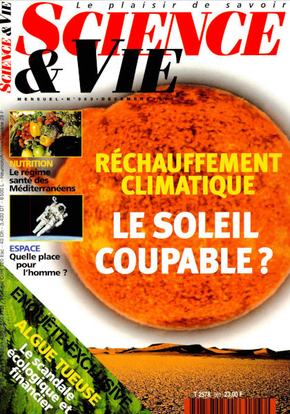 décembre 1997 – 196 pages• L’évènement : La revanche d’Ariane 5 • Forum ACTUALITÉ • Recherche • Environnement • Technologie • Médecine • FOCUS : L’affaire des grenouilles sans tête • EN COUVERTURE : Réchauffement climatique : Le Soleil est-il coupable ? – Quand le Soleil brille trop – Quand passent les nuages • PHYSIQUE : Le seigneur des atomes • GÉOPHYSIQUE : Le cœur chaotique de la Terre • ARCHÉOLOGIE : Les adorateurs de Glozel • ENQUÊTE : Algue tueuse : Le scandale écologique et financier – Le roman noir de l’algue verte – Les bonnes affaires de la caulerpe • CAHIER PHOTOS : Le microscope de la vie • NUTRITION : Du vin, de l’huile d’olive et de la santé • HISTOIRES : Ils ont inventé le Big Bang • Rétro : Il y a 25 ans • VOILE : Le bateau qui vole • AUTOMOBILE : Comment dépolluer le diesel SÉLECTION • High-tech • Livres • CD-Rom • Astronomie • Internet FUTURS • La guerre commerciale sera aussi écologique • Quelle place pour l’homme dans l’espace ? • C’est déjà demain ! |