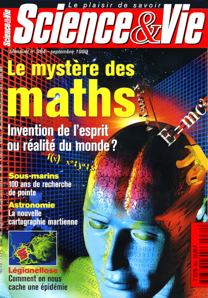 septembre 1999 – 172 pages• L’évènement : Mémoire jetable • Forum ACTUALITÉ • Recherche • Environnement • Technologie • Médecine • EN COUVERTURE : Le mystère des maths – Invention de l’esprit ou réalité de l’Univers – La biologie des maths – Le miroir intérieur de la réalité • ASTRONOMIE : Sur les sommets de Mars • ENVIRONNEMENT : Le fond de l’air n’est pas très frais • ÉPIDÉMIOLOGIE : L’océan, un bouillon de culture • AGROALIMENTAIRE : Quand le sel tue • AVIATION : Décollage sous « X » • ÉTHOLOGIE : Les poules, moins stupides qu’elles n’en ont l’air • LINGUISTIQUE : Le parler des banlieues • ENQUÊTE : La légionellose frappe en silence • DÉFENSE : Plongée dans la haute technologie • TECHNOLOGIE : Des trains pas comme les autres • MULTIMÉDIA : L’éclosion des parcs virtuels PL@NET • Actualité du multimédia • Le télé-achat et les cybermarchands • Les maths au Net • Conso • Super Audio CD contre DVD ENCYCLOPÉDIE XXE SIÈCLE • L’invention de la relativité – Le monde selon Einstein – Voyage en relativités – THIBAUT DAMOUR : « Une théorie si condensée qu’on ne peut en saisir toute la richesse » LOISIRS • Rétro • Le ciel du mois • CD-Rom • Livres |