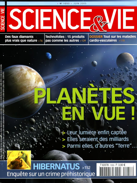 juin 2005 – 168 pages• Avant-propos : Voir ailleurs… ACTUALITÉS • RECHERCHE : • Sur la Lune, il existe un lieu où le Soleil ne se couche pas • Une incroyable association insecte-plante repérée… • SANTÉ & MÉDECINE : • Injecter plusieurs vaccins à la fois n’est pas l’idéal • Un plastique alimentaire serait peut-être source de stérilité • ENVIRONNEMENT & CADRE DE VIE : • Les barrages sont bien une menace pour les écosystèmes • Des satellites innovent pour sauver les gorilles… DÉCODAGE • [À LA UNE] : Planètes en vue ! • EN PROGRÈS • Notre petite voix intérieure livre ses secrets • Le diamant artificiel vers la perfection • Pays de Pount : la légende prend corps • Un jeu vidéo au secours du cancer • EN PRATIQUE • Éoliennes: le grand vent de la maturité • « Puits de carbone » : premier test au Brésil • CASSE-TÊTE : L’étrange crise de croissance des Alpes REPÈRES • Le point sur… Les maladies cardio-vasculaires – Contexte : Un fléau planétaire – Faits & chiffres : Ce sont les femmes les plus menacées – Mécanisme : Le cholestérol n’est pas l’ennemi no 1 – Prévisions : Elles ne sont nullement une fatalité – Traitements : La chirurgie réalise des exploits – Recherche : Vers des remèdes plus ambitieux • QUESTIONS-RÉPONSES • Combien de temps l’homme survivrait-il si les abeilles disparaissaient ? • Qu’est-ce qui fait « craquer » un glaçon quand on le plonge dans un liquide ? • Le ciel du mois • COMMENT ÇA MARCHE : Le GPS • ILS L’ONT FAIT : Spécial high-tech • Photo et vidéo en fête • La téléphonie s’émancipe • L’informatique en toute liberté • Le sport suit le mouvement • La vie pratique s’embellit • IL Y A… 30 ans EXPLORATION • Hibernatus : un crime vieux de 5 300 ans ? |