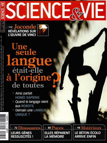 octobre 2006 – 152 pages• Avant-propos : Sur le bout de la langue • FORUM : Réactions, critiques, remarques… nos lecteurs prennent la plume • ILS L’ONT FAIT : Retour en image sur les derniers événements scientifiques ACTUALITÉS • EN DIRECT DES LABOS : La matière noire existe bel et bien – Un écosystème de 15 millions d’années a été mis au jour – Une fourmi est capable de voler ! – etc. • PLANÈTE TERRE : La population mondiale en 2025 – Le puffin bat le record de migration – etc. • SANTÉ : La lutte contre le VIH est relancée – L’allergie aux examens existe – etc. • L’AGENDA DES SCIENCES : Tous les grands rendez-vous scientifiques d’octobre • LES CLÉS POUR COMPRENDRE : Système solaire : la nouvelle donne À LA UNE : Une seule langue était-elle à l’origine de toutes ? FONDAMENTAL • GÈNES DU PASSÉ : La biologie paléomoléculaire reconstitue des gènes d’espèces préhistoriques • MÉMOIRE : Une puce électronique pourrait réparer la mémoire • MENHIRS : À Belz, un nouveau « Carnac » intrigue les archéologues • CENTRALES : Révolutionnaire, un compresseur devrait booster les centrales électriques • COURANTS D’AIR : Dans les zones à risque, on peut les dresser en mur ! • BÉTON ÉCOLO : Moins polluant, plus résistant : la formule est au point EXPLORATIONS • ANALYSE : Les extraterrestres, miroirs de la science • RÉCIT : Dans les secrets de la Joconde EN PRATIQUE • À LIRE, À VOIR : Tout sur les livres, expositions, films, sites web, etc., de l’actualité des sciences. Et toujours ”Le ciel du mois” • Q & R : Le cœur artificiel pourrait-il remplacer la greffe ? – Pourquoi les petites planètes sont-elles rocheuses, et les grosses gazeuses ? – Pourquoi la gomme gomme ? • LE POINT SUR… l’ADSL • TECHNOFOLIES : Le lave-linge antibactérien – L’alarme plus intelligente… • TEST : Êtes-vous prêts pour le prix Nobel ? |