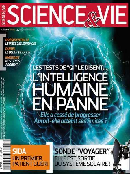avril 2012 – 148 pages• Avant-propos : Où va l’intelligence ? • FORUM ACTUS • Labos : Le manteau océanique abrite des traces de vie – Pour séduire, un oiseau se fait illusionniste – etc. • FOCUS : Neutrinos : un couac scientifique • LES CLÉS POUR COMPRENDRE : Pourquoi la génétique entre dans une nouvelle ère • IDÉE NEUVE : « J’ai trouvé le moyen d’écouter les bactéries » • Terre : Ils ont enfin atteint Vostok – Un séisme majeur guetterait Fukushima – etc. • ON EN REPARLE : Biodiversité : et si les espèces invasives ne l’appauvrissaient pas ? • Médecine : L’hormone de l’humeur a aussi un rôle sur les os – Un parasite remédie aux lésions du poumon – etc. • FOCUS : Maladies cardiovasculaires : le risque de père en fils repéré sur le chromosome Y • Technos : La fibre optique devient active – Un satellite va nettoyer l’espace – etc. • ON TENAIT À VOUS LE DIRE : Ne bradons pas l’enfouissement de nos déchets nucléaires FONDAMENTAL • À LA UNE : L’intelligence hulmaine en panne • ÉVÈNEMENT : La sonde Voyager est sortie du Système Solaire • DÉCOUVERTE : Massage : nos gènes adorent • ENQUÊTE : Diesel : vers la fin d’une sale exception française ? • RÉVÉLATION : Cellules : vivre ensemble, c’est facile • EXPLOIT : Ils ont réussi à voir une chose et son contraire • AVANT-PREMIÈRE : Sida : 4 traitements annoncent la fin du cauchemar • LE POINT SUR… 100 ans après le Titanic… Où en est la sécurité maritime ? EN PRATIQUE • BON À SAVOIR • ZOOM DU MOIS : Élection présidentielle : évitez les pièges des sondages • QUESTIONS / RÉPONSES : Comment se fait-il que les dispositifs médicaux soient si peu contrôlés ? – Pourquoi n’attrape-t-on certains virus qu’une fois ? – Sait-on ce qui fait geler l’eau chaude plus rapidement ? – Qu’est-ce qui a déterminé l’ordre des touches de nos claviers ? – Pour quelle raison le Nord figure-t-il en haut des cartes ? – Le savon peut-il provoquer la résistance des bactéries ? • TECHNOFOLIES : La première voiture qui rapetisse pour se garer – Le chargeur nomade branché… sur l’eau – Le bonsaï qui produit du courant – Le détergent vert, mais musclé – etc. • LE CIEL DU MOIS • Contre-sommaire |