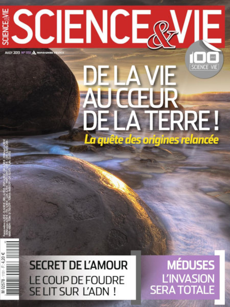 août 2013 – 144 pages• Avant-propos : Nos ancêtres les « intraterrestres » ? • FORUM ACTUS • Labos : Voici la première carte de la course des galaxies – On sait pourquoi les poulets n’ont pas de pénis – Les mammifères marins sont chargés d’électricité – Voir une molécule réagir est enfin devenu possible – etc. • FOCUS : Sentiment amoureux : il se voit sur l’ADN • Terre : Sous la glace, voici à quoi ressemble l’Antarctique – Du simple sable pourrait endiguer les marées noires – etc. • LES CLÉS POUR COMPRENDRE : Plastiques : pourquoi s’alarme-t-on soudain qu’ils polluent les mers ? • Médecine : L’os infecté pourra être mieux soigné – Ils testent une greffe de veine bioartificielle – Le lien entre autisme et pollution se resserre – etc. • ON EN REPARLE : Pesticides : leur impact sur la santé ne fait plus de doute • Technos : Ces cristaux sont la clé de nouveaux matériaux – Des ascenseurs vont grimper jusqu’à 1 000 m – etc. • IDÉE NEUVE : « Je peux diriger des lasers à l’aide d’une flamme » • ON TENAIT À VOUS LE DIRE : Voyages spatiaux : il y a loin du rêve au délire FONDAMENTAL • À LA UNE : De la vie au cœur de la Terre ! • DÉBAT : Apprendre à écrire sur ordinateur ? Les élèves doivent garder la main • CASSE-TÊTE : Vers la fin des grands arbres ? • ÉVÈNEMENT : Trou nouer de la Voie Lactée : que le spectacle commence ! • ANALYSE : Hydroliennes : l’heure du choix • ENQUÊTE : Armes chimiques : quel antidote ? • PERSPECTIVES : Méduses : l’invasion est devenue globale • 7 IDÉES NEUVES POUR LE XXIE SIÈCLE : 5. Physique fondamentale : Penser information plutôt que réalité EN PRATIQUE • BON À SAVOIR • ZOOM DU MOIS : Notre sélection des meilleurs livres de science • QUESTIONS / RÉPONSES : Pourquoi faut-il toujours qu’il y ait des bouchons sur la route des vacances ? – En descente, va-t-on plus vite à vélo si on est lourd ou léger ? – Comment un ventilateur peut-il rafraîchir l’air ? – Parler deux langues rend-il vraiment plus intelligent ? – Pourquoi retient-on mieux sa respiration sous l’eau ? • TECHNOFOLIES : Le son 3D qui diffuse enfin à 360° – L’écran panoramique qui reste net, même de côté – Une plante capable d’assumer ses besoins – etc. • LE CIEL DU MOIS • Contre-sommaire |