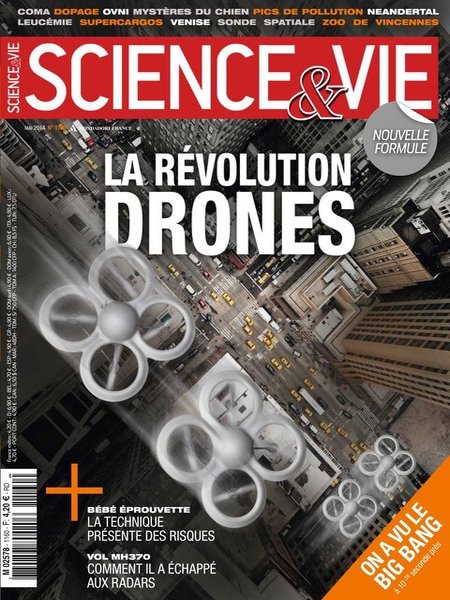 mai 2014 – 144 pages• Avant-propos : Tout est nouveau • FORUM ACTUS • Labos : Jamais l’embryon n’avait été vu ainsi – Mercure rétrécit irrésistiblement… • Environnement : 149 sites de l’Unesco sont menacés par la montée des mers – Les volcans ont préservé la vie à l’âge de glace… • Médecine : Un champignon pathogène cache une vertu médicinale… • Technos : Du fil de pêche relève le défi des muscles artificiels – Les virus se propagent aussi en wi-fi… SCIENCE & SOCIÉTÉ • LE CAS VINCENT LAMBERT : Pourquoi évaluer l’état de conscience minimale est si difficile • APRÈS LES J.O. DE SOTCHI : À quel point le xénon est-il un produit dopant ? • 221 OVNIS APERÇUS EN 2013 : Pourquoi de plus en plus de Français déclarent en voir • DISPARITION DU VOL MH370 : Mais comment peut-on perdre la trace d’un avion de ligne ? • PICS DE POLLUTION EN FRANCE : Où en est excactement la qualité de l’air dans l’Hexagone ? À LA UNE • LA RÉVOLUTION DRONES – Les 5 atouts technologiques des drones – Les 6 modèles qui sortent du lot – Tout ce qu’ils permettent déjà de faire • LE CIEL NE SERA PLUS JAMAIS COMME AVANT – Chutes, collisions, terrorismes… Les drones causent déjà des dégâts – Sécuriser le ciel : déjà 4 dispositifs SCIENCE & DÉCOUVERTES • COSMOLOGIE : On a vu le big bang à 10-38 seconde près • ZOOLOGIE : Les nouveaux mystères du chien • CHIMIE : Les molécules cachées du réchauffement • GÉNÉTIQUE : Ce que Neandertal nous a vraiment légué SCIENCE & TECHNIQUES • BÉBÉS ÉPROUVETTES : Il y a une faille dans la technique… • SONDE SPATIALE : Premier test pour la « longe solaire » • VENISE : Le chantier de la dernière chance • LEUCÉMIE : Des cellules tueuses passent à l’attaque SCIENCE & FUTUR • New York se rêve en cité agricole autosuffisante – Le wi-fi de l’espace se met en place – Vers des maisons imprimées en 3D en 24 heures – Cambridge teste un bitume fluorescent… CULTURE SCIENCE • BON À SAVOIR : Non, l’« écriture texto » ne nuit pas à l’orthographe – Attention à la cuisson à haute température – L’impact des pop-up est fort et durable… • QUESTIONS / RÉPONSES : Pourquoi s’étire-t-on au réveil ? – À quelle heure de la journée fait-il le plus froid ? – D’où viennent les noms de famille ?… • À LIRE / À VOIR : La réouverture du zoo de Vincennes – Craig Venter s’engage pour la biologie synthétique… • DANS LE CIEL CE MOIS-CI : Titan, le plus gros satellite de Saturne… • TECHNOFOLIES : Un vélo avec filtre à CO2 – Le maillot de bain qui sèche 6 fois plus vite – Le Segway Bluetooth – L’imprimante 3D faite stylo… • IL Y A… 20 ans : l’inauguration du tunnel sous la Manche |