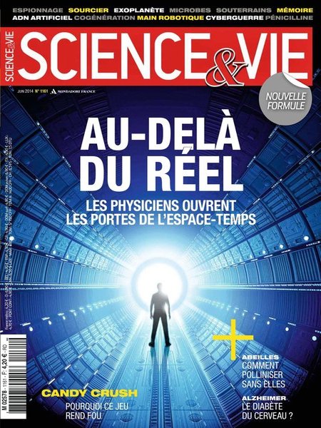 juin 2014 – 140 pages• Avant-propos : États d’esprit • FORUM ACTUS • Labos : On a trouvé le berceau des météorites martiennes – Les momies animales recèlent bien des surprises… • Environnement : Les énergies fossiles dominent de plus en plus la production électrique… • Médecine : Une piste contre la fragilité des os se profile – La trisomie 21 affecte le génome entier… • Technos : Les premières plantes bioniques ont vu le jour… SCIENCE & SOCIÉTÉ • SUCCÈS DE CANDY CRUSH SAGA : Pourquoi ce jeu engendre-t-il une telle addiction ? • AFFAIRE SNOWDEN : Comment espionne-t-on les câbles du Net ? • POLÉMIQUE AUTOUR DE LA COUPE DU MONDE DE FOOTBALL : Le climat peut-il influer sur les résultats ? • DES PRÉDICTIONS RELANCENT UNE ENQUÊTE POLICIÈRE : Les sourciers ont-ils de réels pouvoirs ? • BAISSE DE LA FERTILITÉ : Quelles menaces pèsent sur les spermatozoïdes ? À LA UNE • AU-DELÀ DU RÉEL : Les physiciens ouvrent les portes de l’espace-temps • Des portes vers… la théorie du tout SCIENCE & DÉCOUVERTES • PLANÉTOLOGIE : La Terre a une jumelle • NEUROLOGIE : Alzheimer : l’hypothèse du diabète • ÉCOLOGIE : Voici le vrai microcosmos • COGNITION : Ayumu, champion du monde de Memory SCIENCE & TECHNIQUES • BIOLOGIE SYNTHÉTIQUE : Ils ont crééle premier chromosome artificiel • CENTRALES NUCLÉAIRES : Et si elles nous fournissaient l’eau chaude ? • AGRICULTURE : Qui remplacera les abeilles domestiques ? • ROBOTS : Comment ils tentent de réinventer la main SCIENCE & FUTUR • L’arctique se voit un avenir agricole via ses icebergs – Le vol stratosphérique pour tous se confirme – Une ferme bio s’ouvre dans les sous-sols de Londres – Une tour veut fixer le CO2 pour s’autoconstruire… CULTURE SCIENCE • BON À SAVOIR : Pour la paix des ménages, mieux vaut se parler le ventre plein – Un simple bonjour suffit à juger son interlocuteur… • QUESTIONS / RÉPONSES : Pourquoi les moustiques font-ils autant de bruit ? – Boire je jus d’un fruit équivaut-il à le manger ?… • À LIRE / À VOIR : Visite guidée aux avant-postes de la cyberguerre – La Hulotte sort son no 100 • DANS LE CIEL CE MOIS-CI : Uranus se révèle sous les feux de la Lune • TECHNOFOLIES : Un stylo qui corrige les fautes d’orthographe – La voiture guidée par un drone éclaireur – Un bijou pour se protéger du soleil… • IL Y A… 85 ans : la découverte de la pénicilline par Fleming |