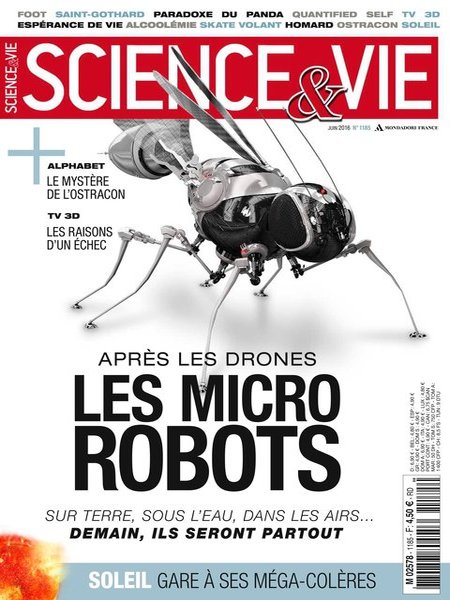 juin 2016 – 140 pages• Avant-propos • FORUM ACTUS • Labos :L’origine du gigantisme des sauropodes a été élucidée – On sait comment se sont peuplées les Amériques – Sur les comètes se crée une molécule essentielle à la vie … • Environnement : La consommation en eau menace les ressources de la planète – Réintroduire des espèces exige de la prudence… • Médecine : L’insomnie chronique est bien une pathologie cérébrale – On peut prévenir le diabète en évitant aussi le sel… • Technos : L’ISS teste un nouveau module gonflable – La voiture autonome se prépare à la course… ÉVÈNEMENT • COMMOTIONS CÉRÉBRALES SUR LES TERRAINS DE SPORT : L’alerte ! À LA UNE : Les microrobots • Sur terre, sous l’eau, dans les airs : demain, ils seront partout • 7 microrobots à la loupe • L’avant-garde d’une invasion massive SCIENCE & DÉCOUVERTES • ASTROPHYSIQUE : Superéruptions : le Soleil est-il un monstre ? • VIROLOGIE : Virus : ils se livrent une guerre sans merci • ÉVOLUTION : Le paradoxe du panda • ARCHÉOLOGIE : Alphabet : l’ostracon qui bouleverse ses origines SCIENCE & TECHNIQUES • GRAND CHANTIER : Saint-Gothard : le tunnel de tous les records • CHIMÈRE : Génome minimal : la vie en moins de 500 gènes • PATRIMOINE : La cathédrale passée au scanner : sauver Beauvais ! SCIENCE & FUTUR • Le concept de cité flottante prend forme – 120 robots sous-marins vont surveiller la lagune de Venise – Tests d’échange d’énergie réussis entre une maison et une voiture – Le plus long tunnel sous la mer reliera l’île de Taïwan à la Chine – Microsoft projette d’héberger son clouds au fond de l’océan – La construction d’une université écoresponsable est lancée au Sahara… LA SCIENCE & LA VIE • Science & société • PODOMÈTRES, TENSIOMÈTRES, BALANCES CONNECTÉS : Pas si probants que ça… pour l’instant • HAUSSE DE LA MORTALITÉ ROUTIÈRE : « Abaisser le seuil d’alcoolémie ne servirait à rien » • VERS L’ARRÊT DES TÉLÉVISEURS 3D : Les raisons d’un échec • ESPÉRANCE DE VIE DES FEMMES : Elle ne progresse presque plus • Science & vie pratique • BON À SAVOIR • TECHNOFOLIES : Le drone qui prend des images à 360° – Le premier skate volant tout-terrain – Un casque qui aide à bien dormir – Le vélo qui s’adapte à votre manière de pédaler – Un planétarium dans son salon… • Science & culture • QUESTIONS / RÉPONSES : Un chien aboie-t-il de la même manière en France qu’en Australie ? – Pourquoi les morts deviennent-ils raides ?… • À VOIR / À LIRE • IL Y A… 40 ans : L’ordinateur démontre le théorème des 4 couleurs |